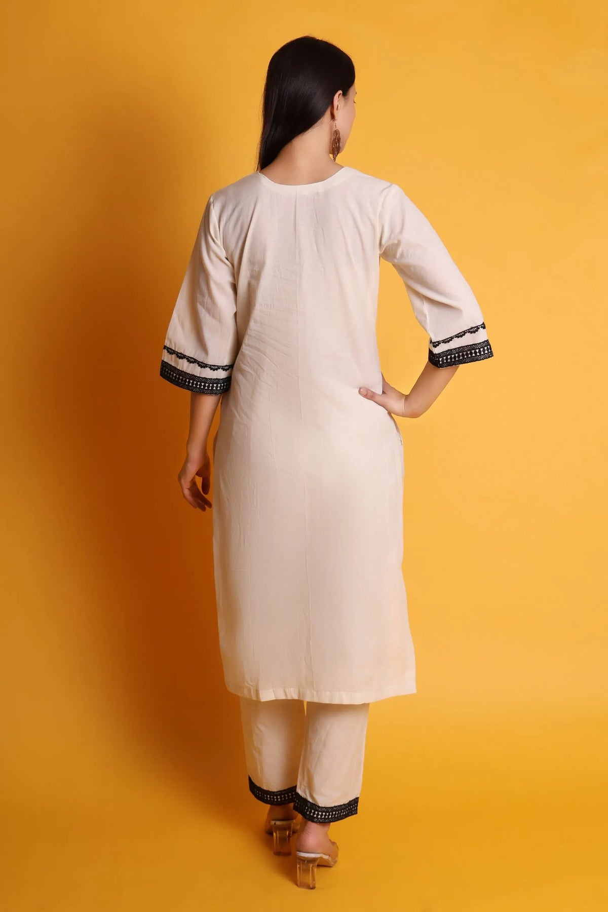 The Cora Cotton Lace Work Kurta Set offers a perfect blend of comfort and elegance. Made from soft, breathable cotton, the kurta features delicate lace work that adds a touch of sophistication. With a classic round neck and quarter sleeves, it provides a relaxed and flattering fit for everyday wear or casual outings. Ideal for warm weather, this set ensures both style and comfort, making it a versatile addition to your wardrobe.