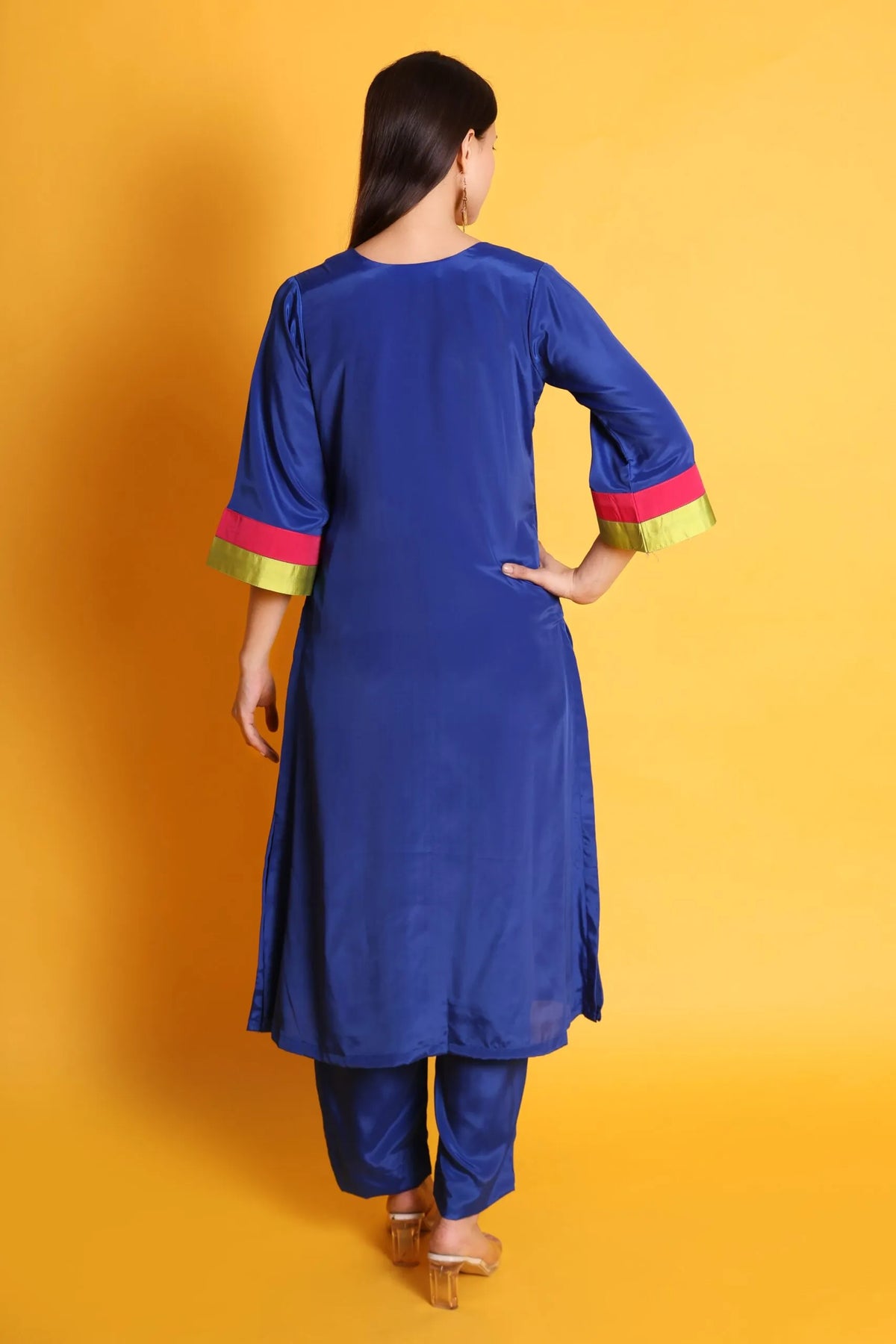 This Royal Blue Crepe Kurta Set combines vibrant color with effortless style and comfort. Made from soft, flowy crepe fabric, the kurta features a flattering V-neck and quarter sleeves, ensuring a chic yet relaxed fit. Perfect for both casual and semi-formal occasions, this set exudes sophistication and versatility. With its bold royal blue hue and comfortable design, it’s an essential addition to your wardrobe for a refined, stylish look.ng.