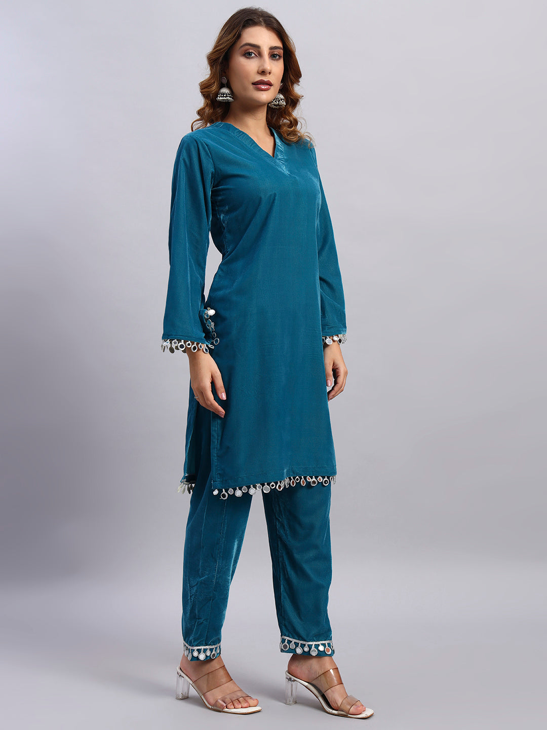 Sky Blue Velvet Coord Set