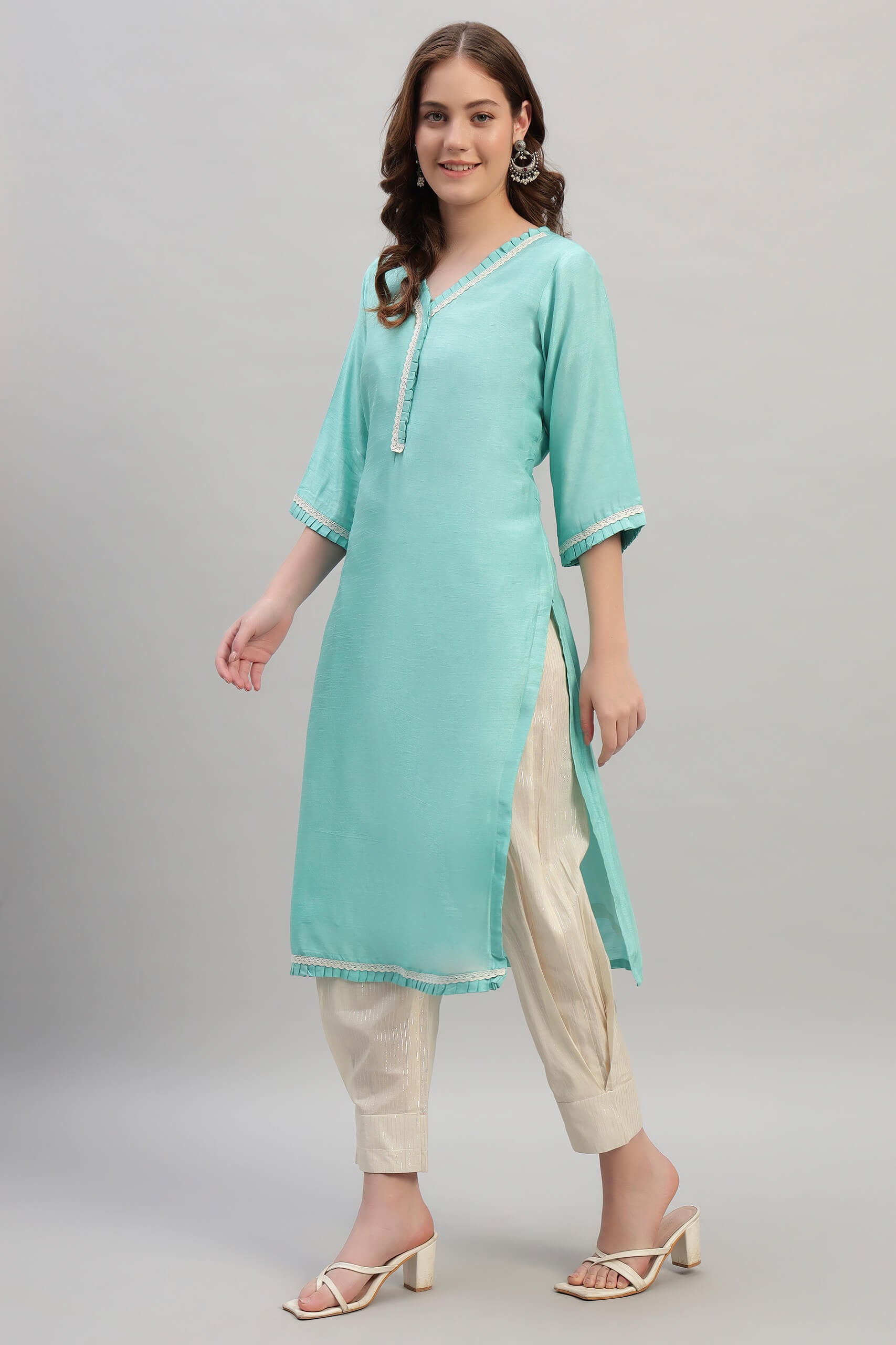 +Step into effortless elegance with this Cambric Cotton Kurta paired with a stylish Afghani pant. Crafted from lightweight and breathable cambric cotton, the kurta offers a soft, smooth texture perfect for all-day wear. Its relaxed silhouette is both flattering and comfortable, making it ideal for everyday outings or casual gatherings. The Afghani pant, with its voluminous and airy design, adds a touch of boho-chic flair while ensuring ease of movement. Together, this set blends comfort, tradition, and contemporary style in one versatile ensemble.