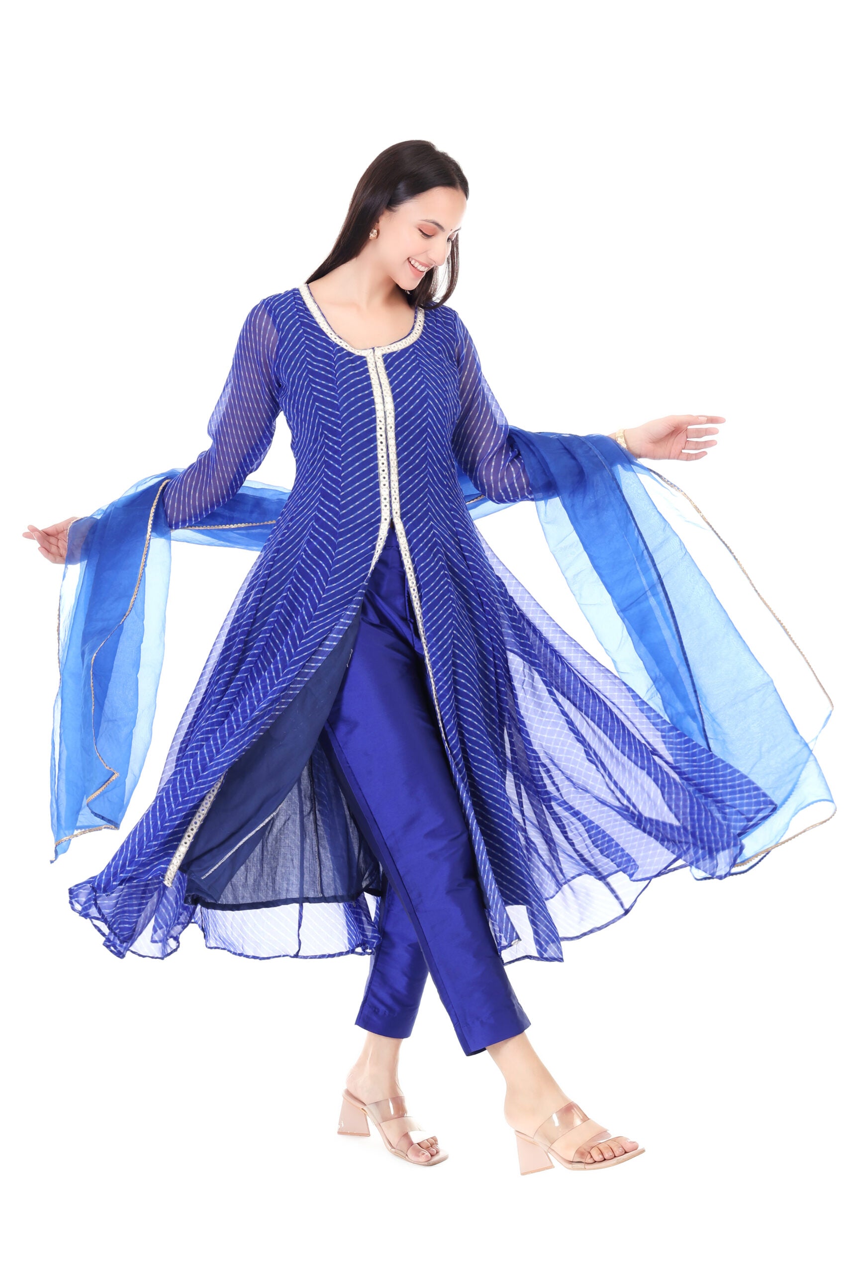 +Step into elegance with our exquisite Georgette Lehria Anarkali, beautifully paired with a flowing dupatta. This stunning ensemble combines traditional craftsmanship with contemporary design, making it a perfect choice for festive occasions, weddings, or any special celebration.