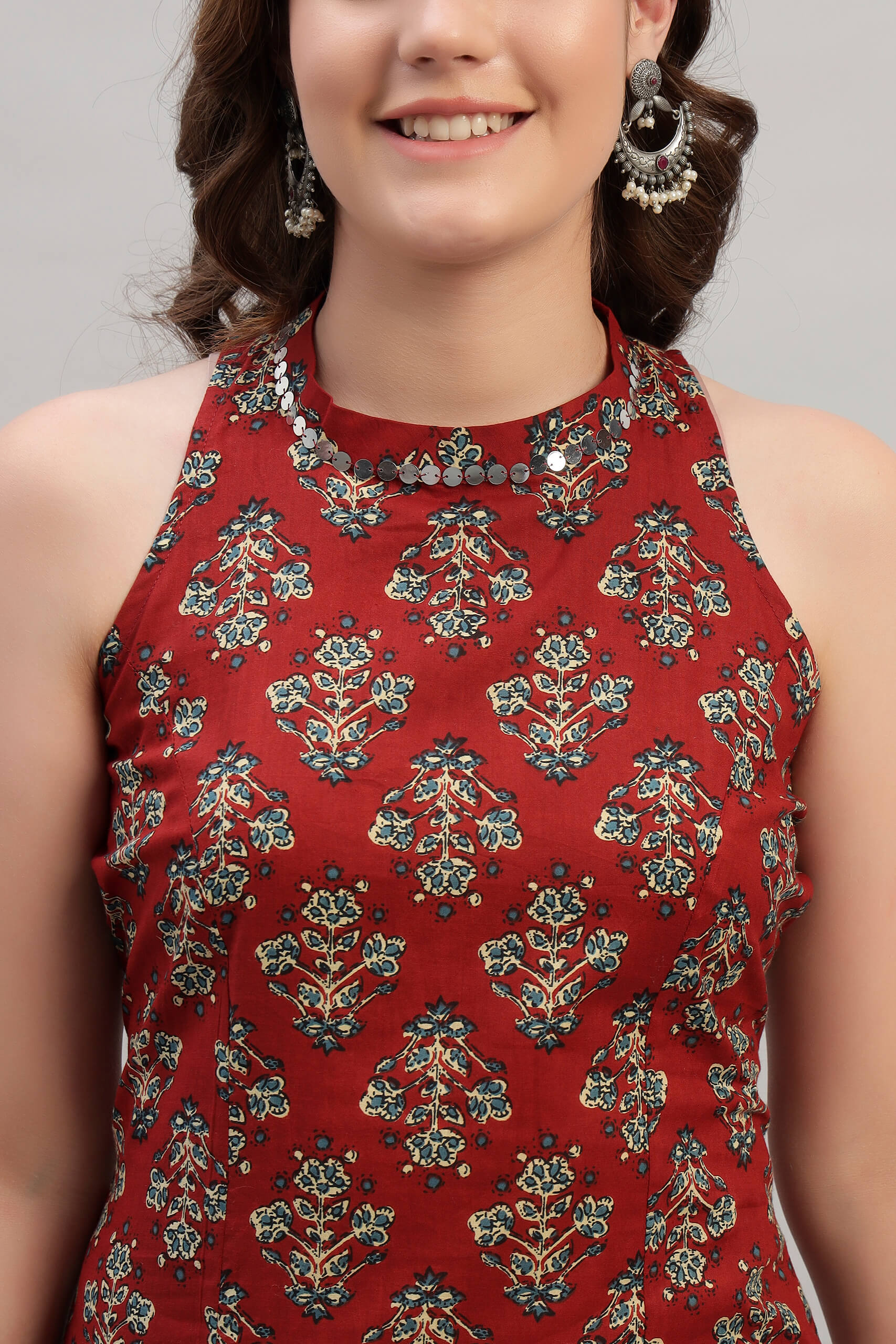 +Make a statement with this Hand Block Cotton Halter Neck Kurta Set, a perfect blend of traditional artistry and contemporary design. Featuring intricate hand block prints, this set is crafted from soft, breathable cotton that ensures comfort while exuding effortless elegance. The halter neck adds a modern twist to the classic kurta silhouette, giving it a stylish edge ideal for both casual and festive occasions. Paired with coordinating bottoms, this set showcases timeless craftsmanship in a fresh, fashion-forward look.
