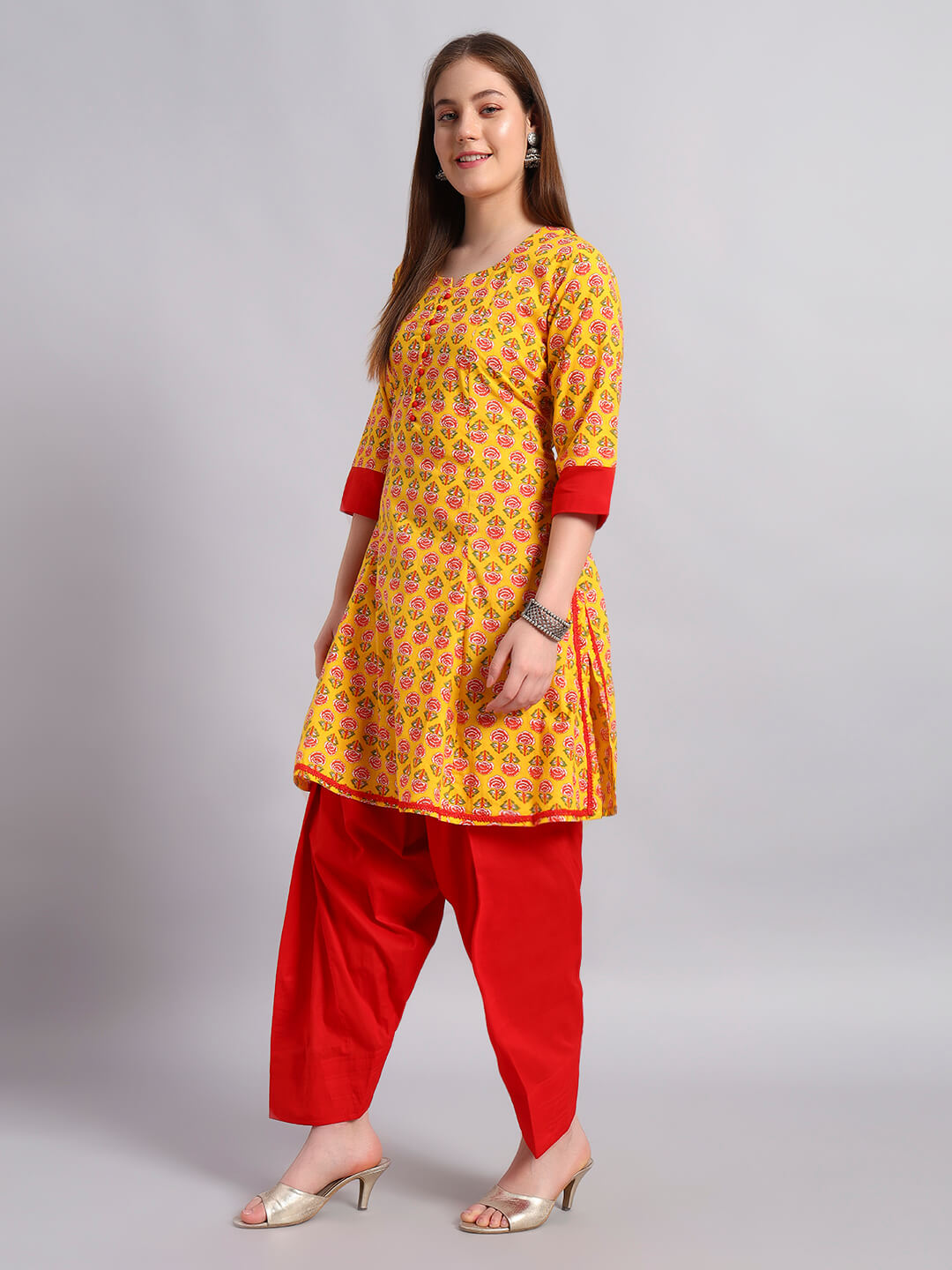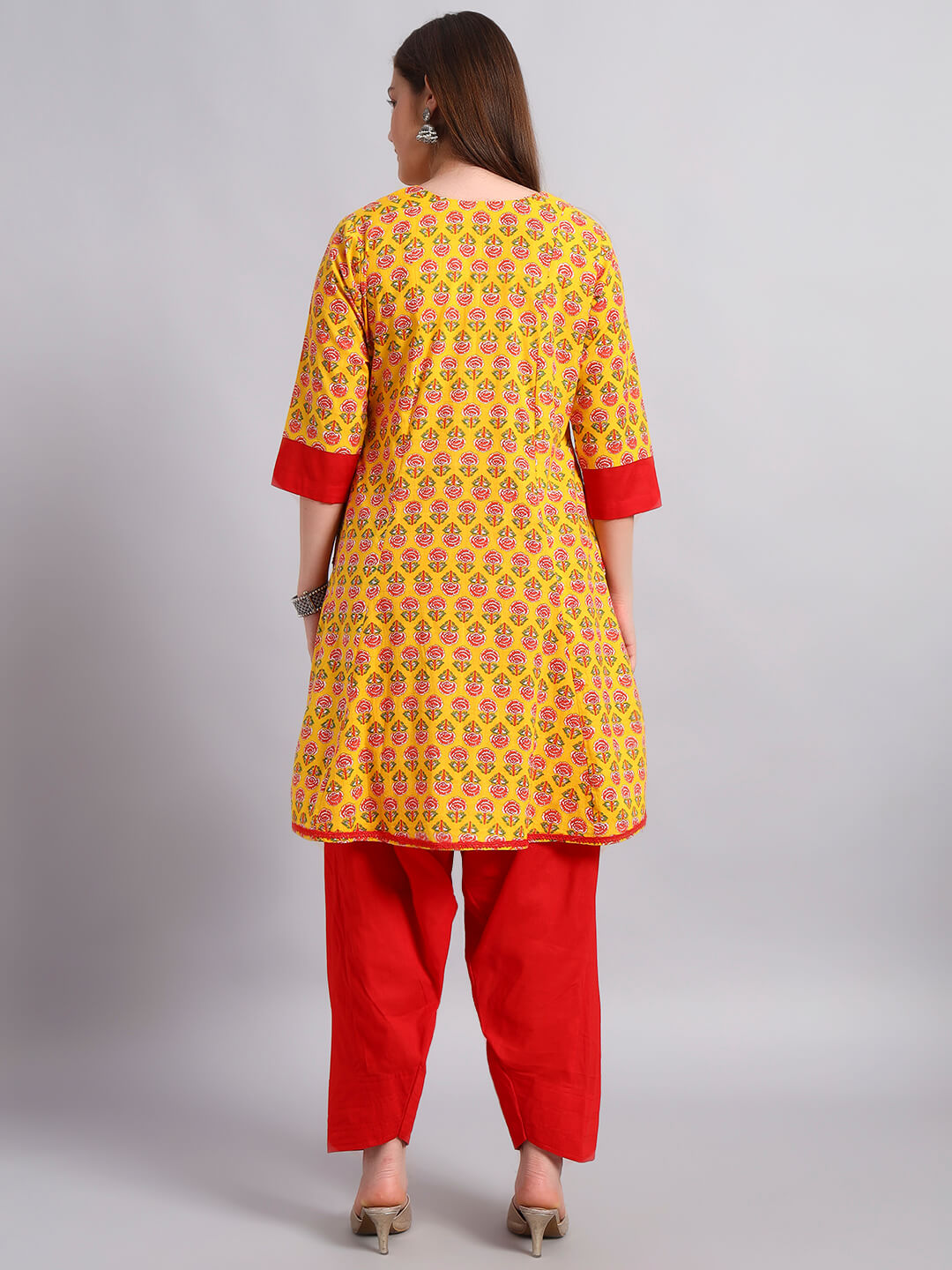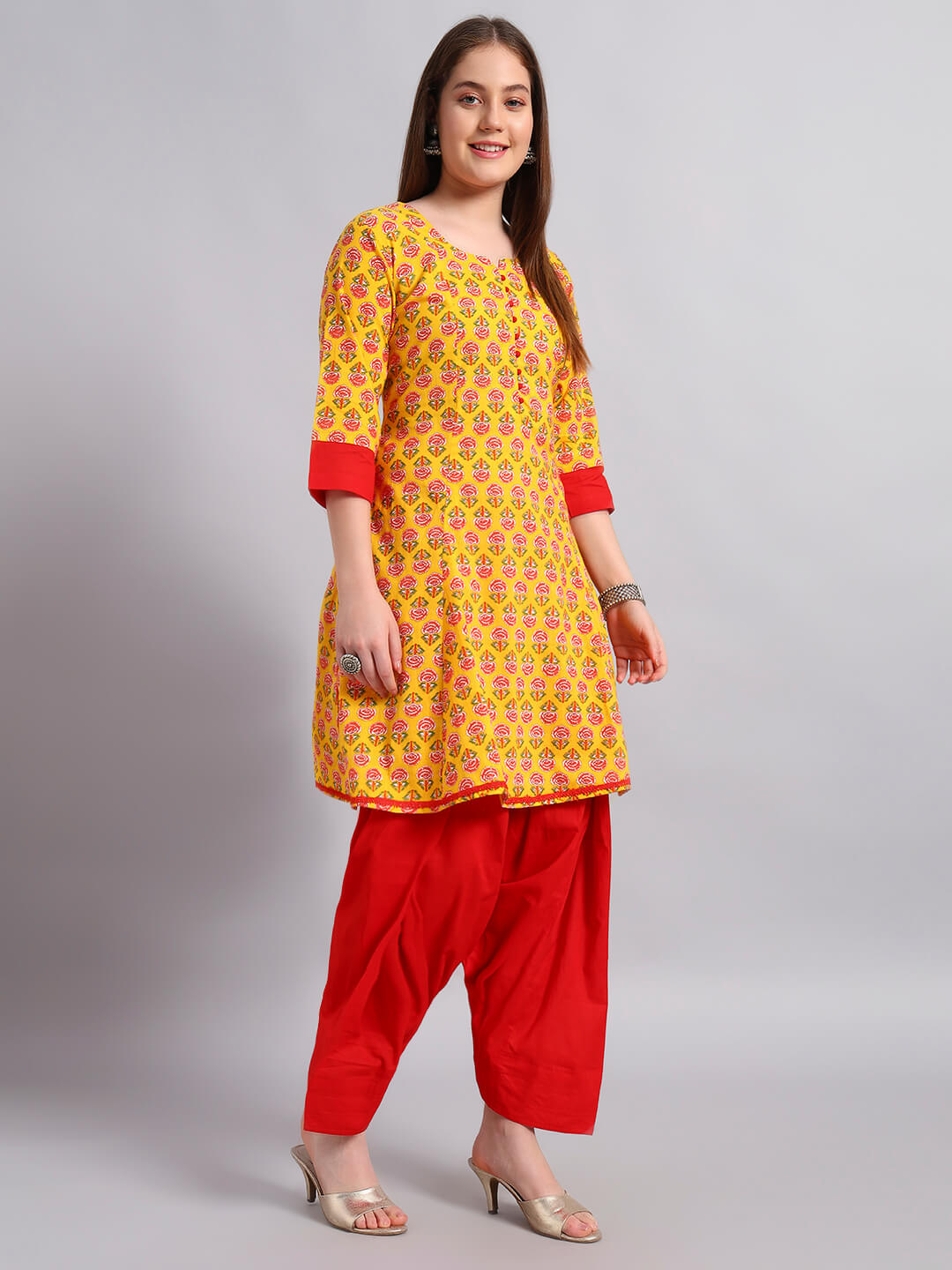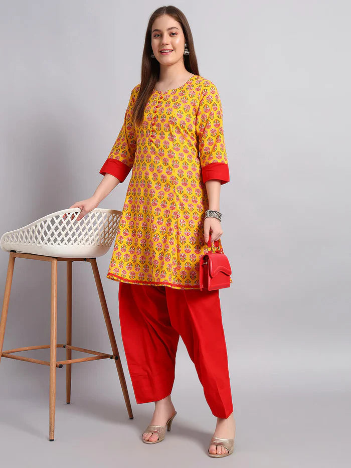 +Celebrate the charm of handcrafted tradition with this Hand Block Cotton Kurta with Salwar. Made from soft, breathable cotton, the kurta showcases intricate hand block prints—each motif carefully stamped by skilled artisans using time-honored techniques. The relaxed silhouette ensures comfort without compromising on style, while the coordinating cotton salwar adds a graceful, classic touch. Ideal for everyday wear, cultural occasions, or slow weekends, this ensemble brings together heritage craftsmanship and effortless elegance.