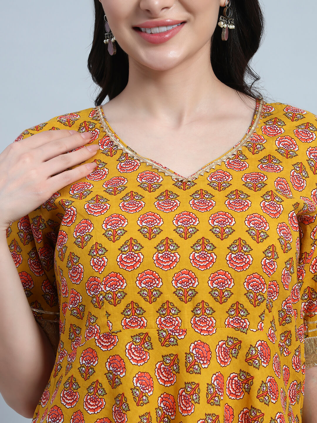 +Embrace timeless grace with this Hand Block Sharara Set with Organza Dupatta, a perfect blend of heritage craftsmanship and festive elegance. The kurta and sharara are crafted from soft, breathable cotton and adorned with intricate hand block prints, reflecting the charm of traditional artistry. The flared sharara adds a regal touch with its graceful movement and comfortable fit. Completing the ensemble is a delicate organza dupatta, light as air and edged with subtle detailing, adding just the right hint of glamour. Ideal for festive occasions, intimate celebrations, or cultural gatherings, this set brings effortless sophistication to your ethnic wardrobe.