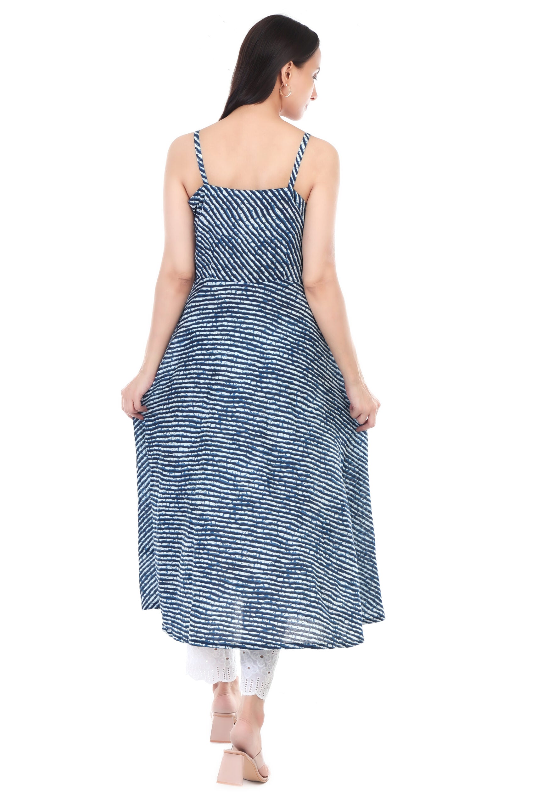 Complete your ensemble with statement jewelry and traditional footwear to make a lasting impression. This handblock print A-line Anarkali set is a perfect blend of tradition and contemporary style, making it a must-have in your ethnic collection.