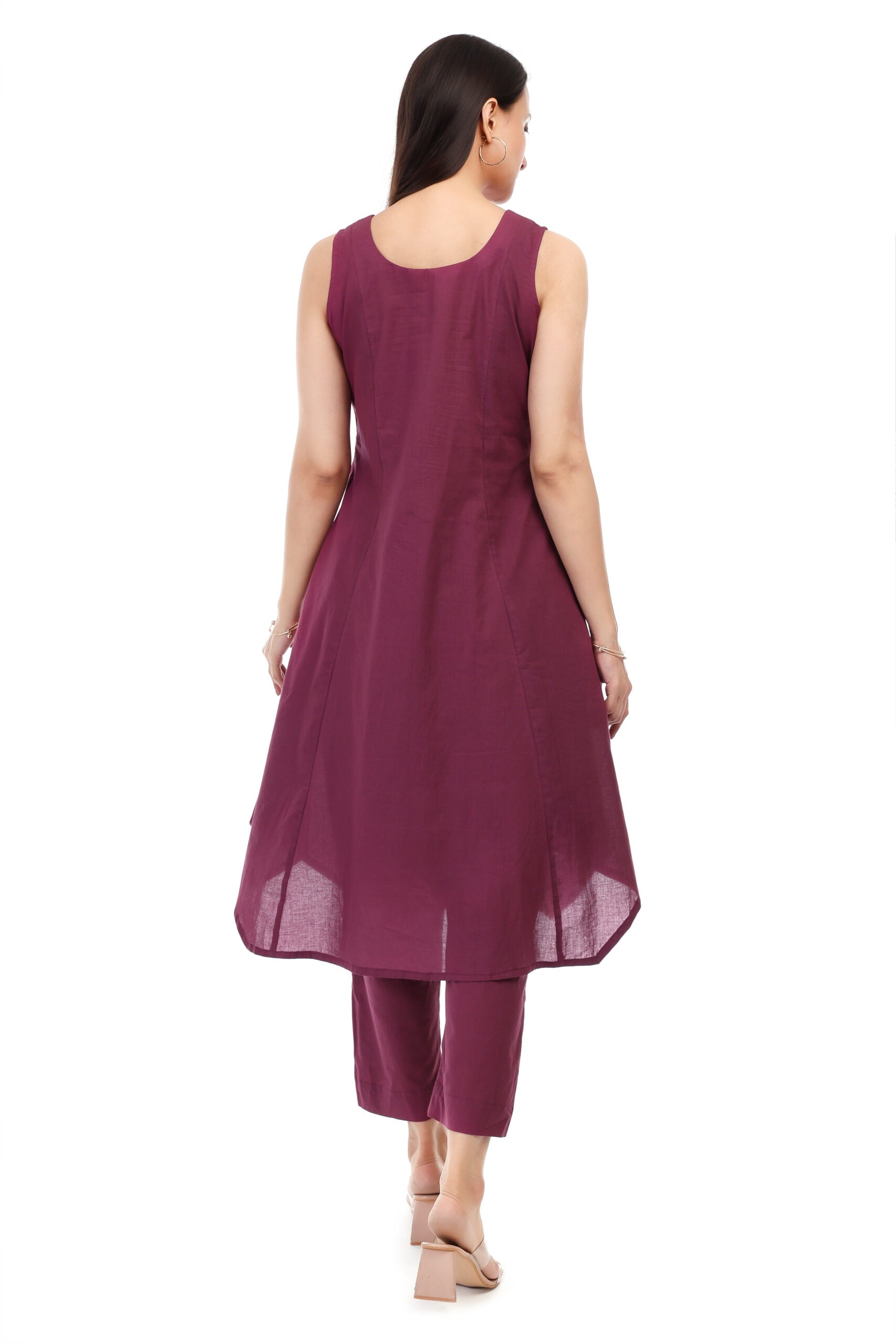 +Rich in color and effortlessly graceful, this jamuni cambric cotton kurta set is a perfect blend of comfort and sophistication. Made from soft, breathable cambric cotton, it offers a lightweight feel that keeps you at ease throughout the day. The deep jamuni hue adds a touch of regal charm, making it an elegant choice for both casual and semi-formal occasions. Designed with a classic silhouette and subtle detailing, the kurta pairs beautifully with matching bottoms for a cohesive, refined look. Style it with silver jhumkas or oxidized accessories to complete an ensemble thatβs timeless, tasteful, and full of quiet allure.