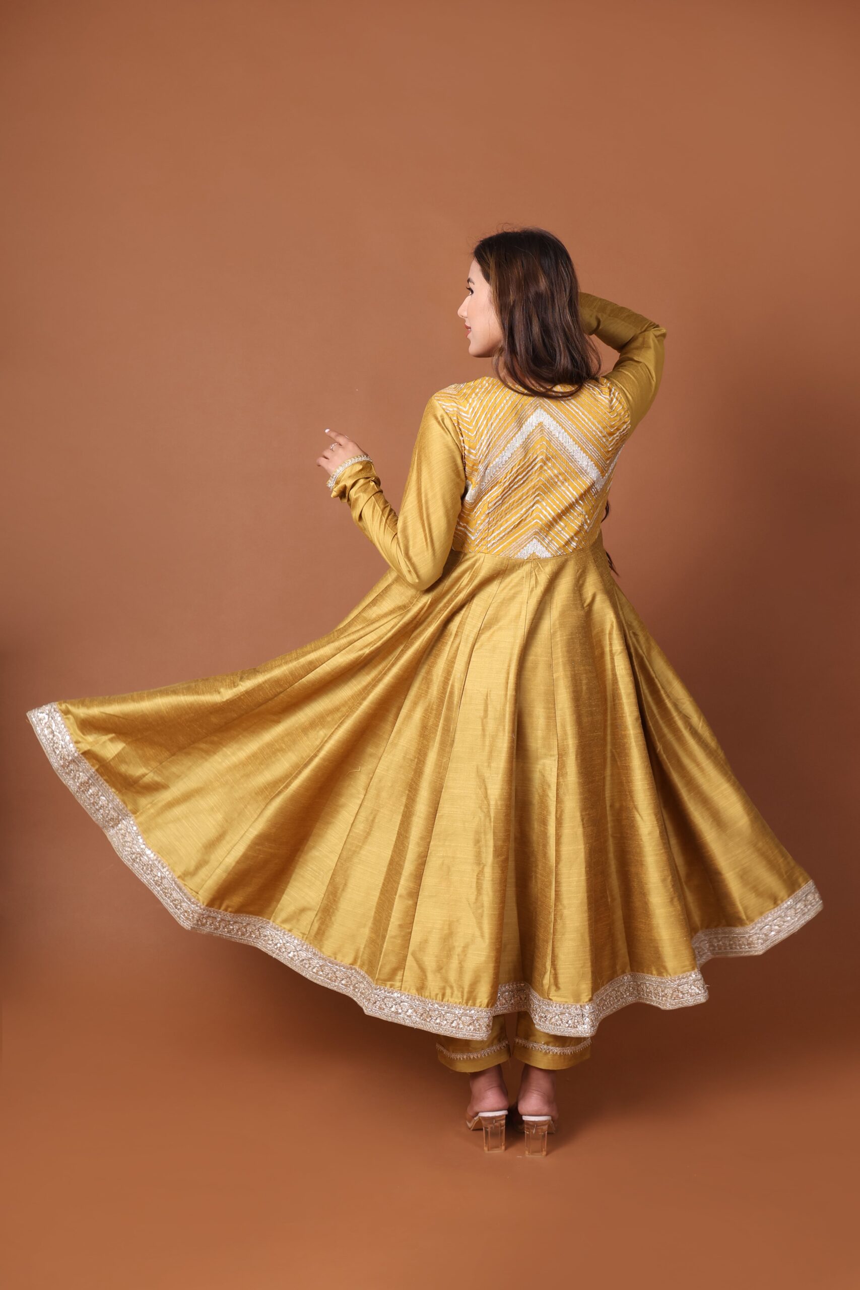 Silk Anarkali Kurta set with Tissue silk dupatta