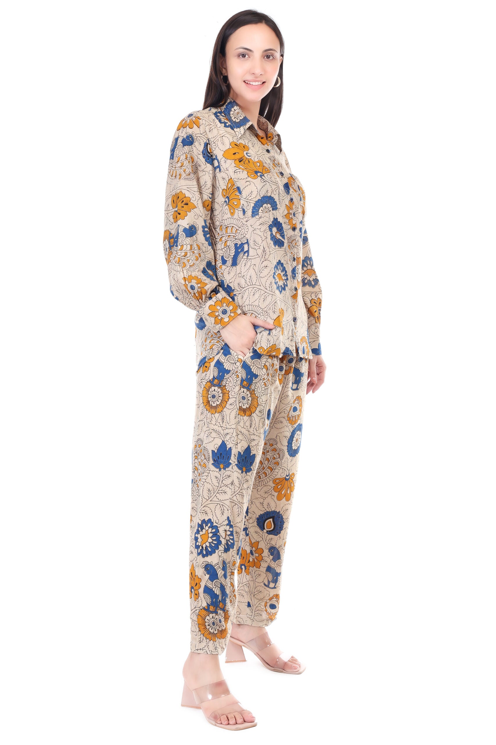 +Add a touch of luxury to your wardrobe with this stunning silk printed co-ord set. Made from premium quality silk, this set features a beautifully printed top and matching bottoms, offering a perfect blend of elegance and contemporary style. The vibrant prints and the smooth, lustrous texture of silk make this ensemble ideal for both day and evening occasions.