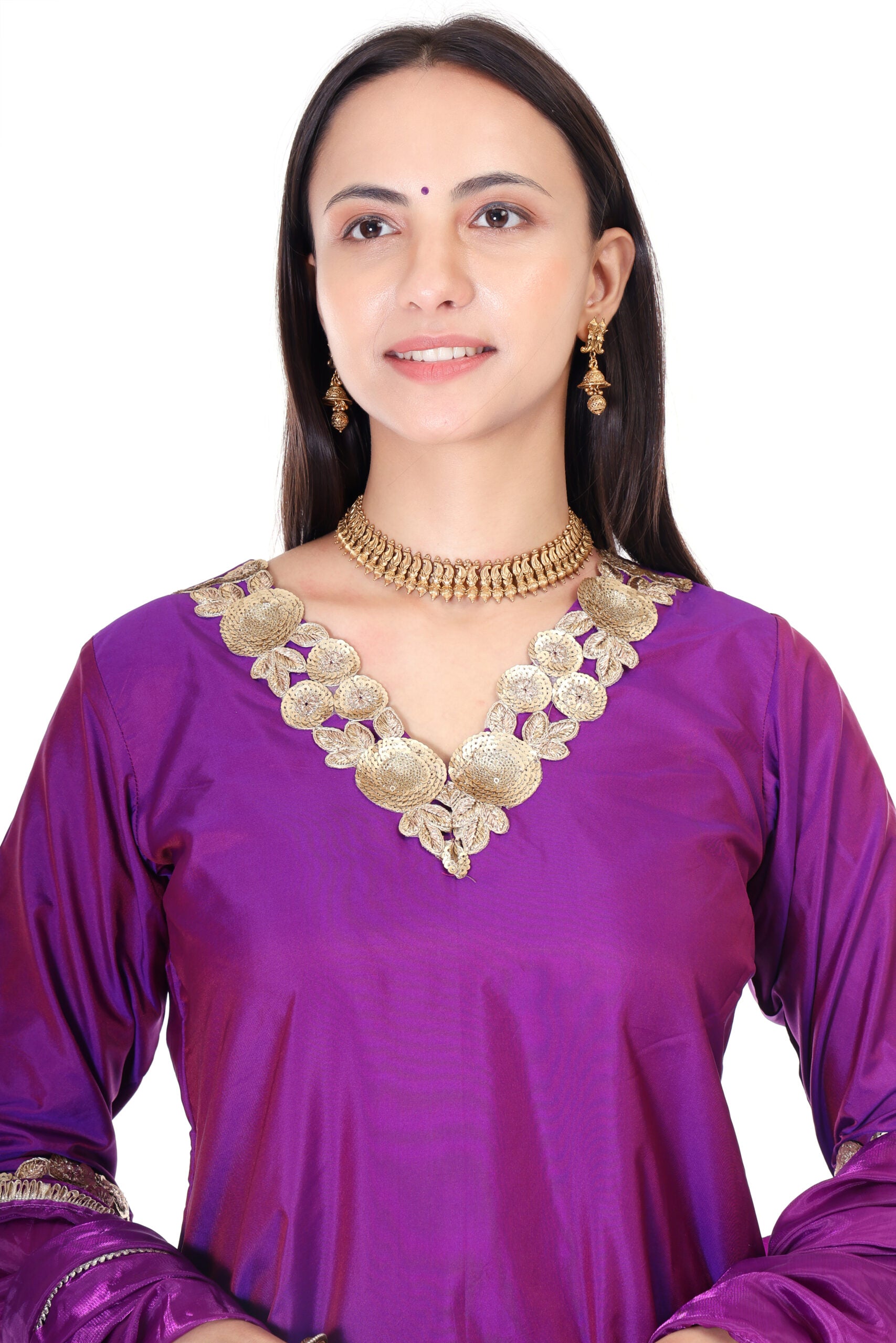 Design: The silk sharara features wide-legged, flared bottoms, accentuated with intricate embroidery, sequins, and zari work that bring a festive shimmer to the outfit. The matching kurti complements the sharara with its traditional neckline and detailed embroidery or embellishments along the sleeves and hemline.